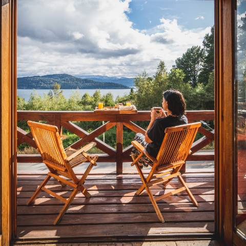 Balcony overlooking Av. Bustillo and lake Nahuel Huapi
