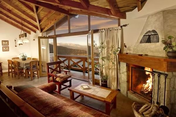 Planta baja: Cocina full equipada(vajilla completa, anafe, horno eléctrico, heladera, microondas, tostadora, cafetera, pava eléctrica) living-comedor con sofá cama de 1.80 de largo x 0.70 de ancho y una cama tipo carrito de 1.80 de largo x 0.60 de ancho) con DVD, TV x Direct tv LED 32. Baño Toilette. Hogar a leña, balcón deck con 2 reposeras.